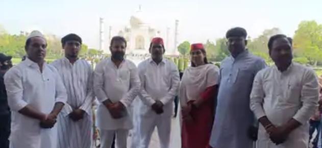 आगरा। समाजवादी पार्टी की मेयर प्रत्याशी के द्वारा शनिवार को ईद पर ताजमहल में नमाज के समय पहुंच कर वोट मांगे गए, उनके वोट मांगने का वीडियो वायरल हो गया है। वीडियो में उनके साथ जिला अध्यक्ष आजाद सिंह भी दिखाई दे रहे हैं। अधिकारियों के आदेश पर प्रत्याशी और कार्यकर्ताओं खिलाफ ताजगंज थाने में मुकदमा दर्ज किया जा रहा है।