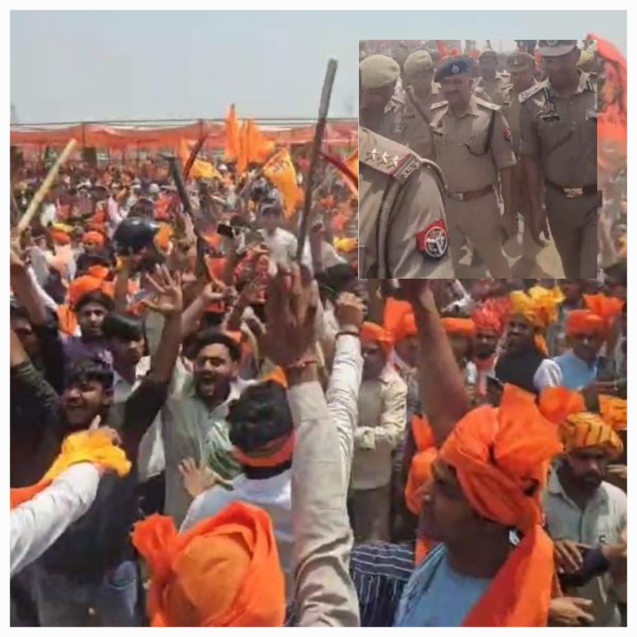आगरा। गढ़ी रामी में आज राणा सांगा की जयंती मनाई जा रही है। भारी संख्या में लोग उसमें पहुंच रहे हैं। कार्यक्रम को रक्त स्वाभिमान सम्मेलन का नाम दिया गया है। कार्यक्रम स्थल पर पुलिस के पहुंचने को लेकर लोग आक्रोशित हो गए। उनके द्वारा पुलिस को घेर लिया गया। तलवार डंडे लहराए गए। अपने को घिरता देख पुलिसकर्मी वहां से निकल पड़े। कुछ लोगों ने पुलिस प्रशासन मुर्दाबाद के नारे भी लगाए। पुलिस कर्मियों के जाने के बाद लोग शांत हुए। लोगों का कहना है कि पुलिस कार्यक्रम खराब करना चाहती है।