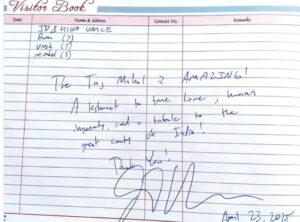 अमेरिकी उपराष्ट्रपति के द्वारा ताजमहल को लेकर विजिटर बुक में लिखे गए शब्द।