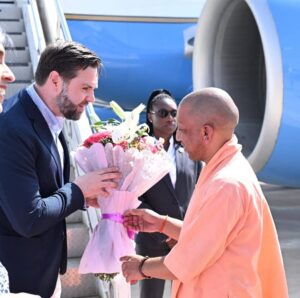 मुख्यमंत्री योगी आदित्यनाथ ने उनकी अगवानी की। एयरपोर्ट पर मयूर नृत्य सहित अन्य सांस्कृतिक कार्यक्रम प्रस्तुत किए गए। एयरपोर्ट से ताजमहल तक के रूट को सजाया गया। रास्ते में उनके स्वागत को स्कूल के बच्चे खड़े रहे। सुरक्षा के भी पुख्ता इंतजाम रहे। शिल्पग्राम तक वे कार से पहुंचे। यहां से बैटरी कार से ताजमहल पूर्वी गेट तक पहुंचें। अमेरिकी उपराष्ट्रपति की विजिट में ताजमहल के वाटर चैनल में लगे फव्वारे भी चले। भारतीय पुरातत्व सर्वेक्षण (एएसआई) ने वाटर चैनल की सफाई कराई है। उद्यान में रायल गेट के समीप से सेंट्रल टैंक होते हुए चमेली फर्श के पास तक लगे फव्वारे आमतौर पर बंद रहते हैं। इन्हें वीआइपी विजिट के समय ही चलाया जाता है।