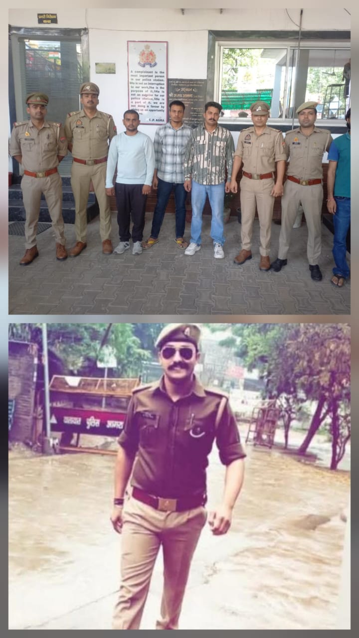 इंस्पेक्टर राजीव त्यागी ने बताया कि कुशल पाल सिंह बाह के रहने वाले हैं। न्यू आगरा थाना क्षेत्र में अपने भाई हर्षवर्धन के साथ रहते हैं। सोमवार को उनका भाई हर्षवर्धन न्यू आगरा क्षेत्र में कुछ सामान लेने के लिए गया था। रात तक उनका भाई घर वापस नहीं आया। परिजनों ने काफी खोजा लेकिन नहीं मिला। रात में करीब 2:30 बजे हर्षवर्धन के फोन से उनके पास फोन आया। फोन करने वाले ने हर्षवर्धन का अपहरण करने की बात कही और फिरौती के रूप में पांच लाख रुपये मांगे। कुशल ने इस बात की जानकारी न्यू आगरा थाना पुलिस को दी। पुलिस ने मामले की जांच शुरू कर दी। जांच के दौरान सामने आया कि मोनू नाम के सिपाही ने फिरौती मांगी है उसी ने अपने साथियों के साथ युवक का अपहरण किया है। उसकी तैनाती के बारे में पता किया गया तो उसकी तैनाती सैंया थाने में थी। कुछ दिन पहले ही उसकी वहां तैनाती हुई है। इससे पहले वह सस्पेंड था और काफी चर्चित भी रहा है। उसके ऊपर अन्य जिलों में मुकदमे भी बताए जा रहे हैं। पुलिस ने युवक को सकुशल बरामद कर लिया और सिपाही मोनू और उसके दोनों साथी राहुल और राजकुमार को भी गिरफ्तार कर लिया। पूछताछ में उन्होंने बताया कि हर्षवर्धन को कारगिल पर बुलाया था जहां से उन्होंने उसकी किडनैपिंग की। जब उन्हें पता चला कि हर्षवर्धन के पास पैसे नहीं है तो तीनों ने उसके परिजनों से फिरौती वसूलने का प्लान बनाया। 22 तारीख की रात से 23 तारीख तक की रात तक वह उसे गाड़ी में घूमाते रहे। पुलिस ने मोबाइल की लोकेशन ट्रेस करके आरोपियों को गिरफ्तार कर लिया।