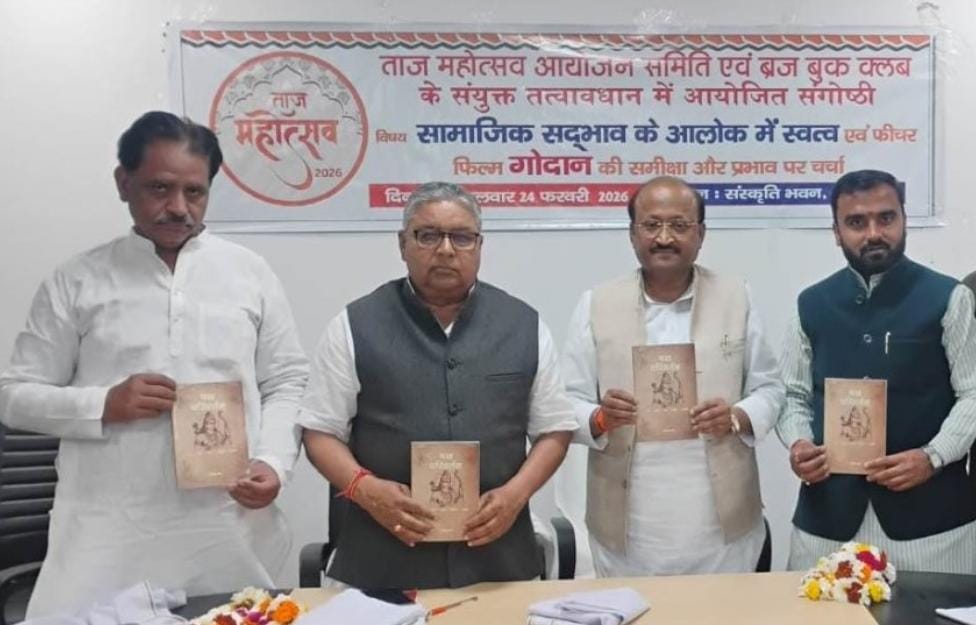 आगरा। ताज महोत्सव के अंतर्गत आयोजित संगोष्ठी में गौमाता के धार्मिक, सामाजिक और आर्थिक महत्व पर विस्तृत चर्चा हुई। वक्ताओं ने गौसेवा को सामाजिक समरसता और आत्मनिर्भरता का माध्यम बताया। पंचगव्य, गौउत्पाद, गौघृत उत्पादन और कानूनी जानकारी के साथ ‘गोदान’ फिल्म की समीक्षा भी प्रस्तुत की गई।