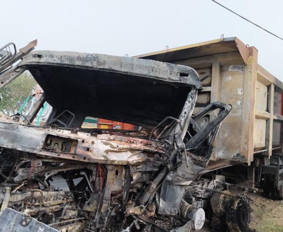 कैंटर से टकराया डंपर, आग लगने से ड्राइवर जिंदा जला