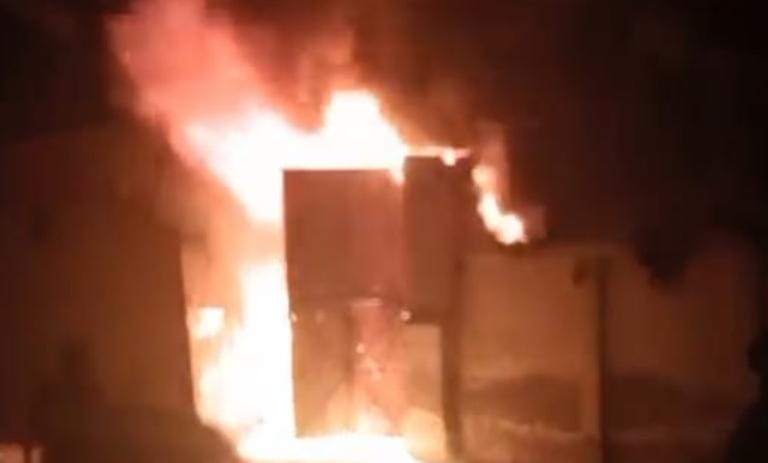 रकाबगंज में कपड़े के गोदाम में लगी आग