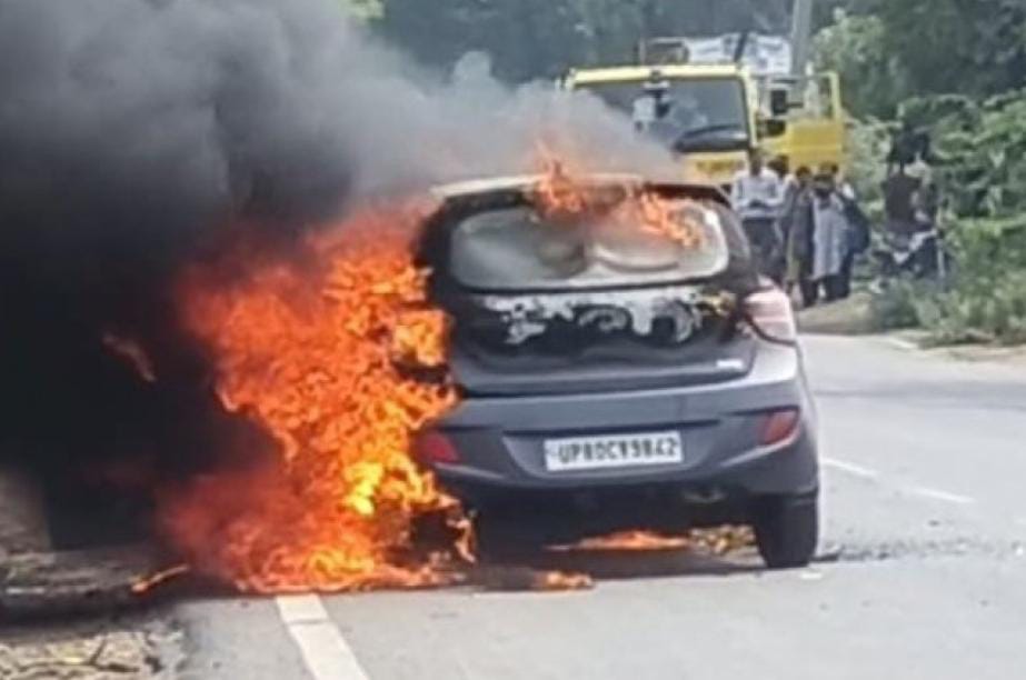 शिक्षक दिनेश शर्मा अपने तीन साथियों के साथ स्कूल जा रहे थे। शमसाबाद क्रॉस करने के बाद अचानक कार में से धुंआ निकलने लगा। धुआं देखकर शिक्षक दिनेश शर्मा ने समझदारी दिखाते हुए तुरंत गाड़ी को सड़क किनारे रोका और सभी सवारों को बाहर निकाल लिया। जैसे ही सभी बाहर निकले, कार का अगला हिस्सा आग की लपटों में घिर गया। आग इतनी तेज़ थी कि कुछ ही मिनटों में पूरी कार धू-धू कर जलने लगी। लपटें देखकर राहगीरों में दहशत फैल गई और यातायात भी कुछ समय के लिए ठप हो गया। लोगों ने तुरंत फायर ब्रिगेड को सूचना दी, लेकिन जब तक दमकल की गाड़ी मौके पर पहुंची, कार पूरी तरह जलकर खाक हो चुकी थी।