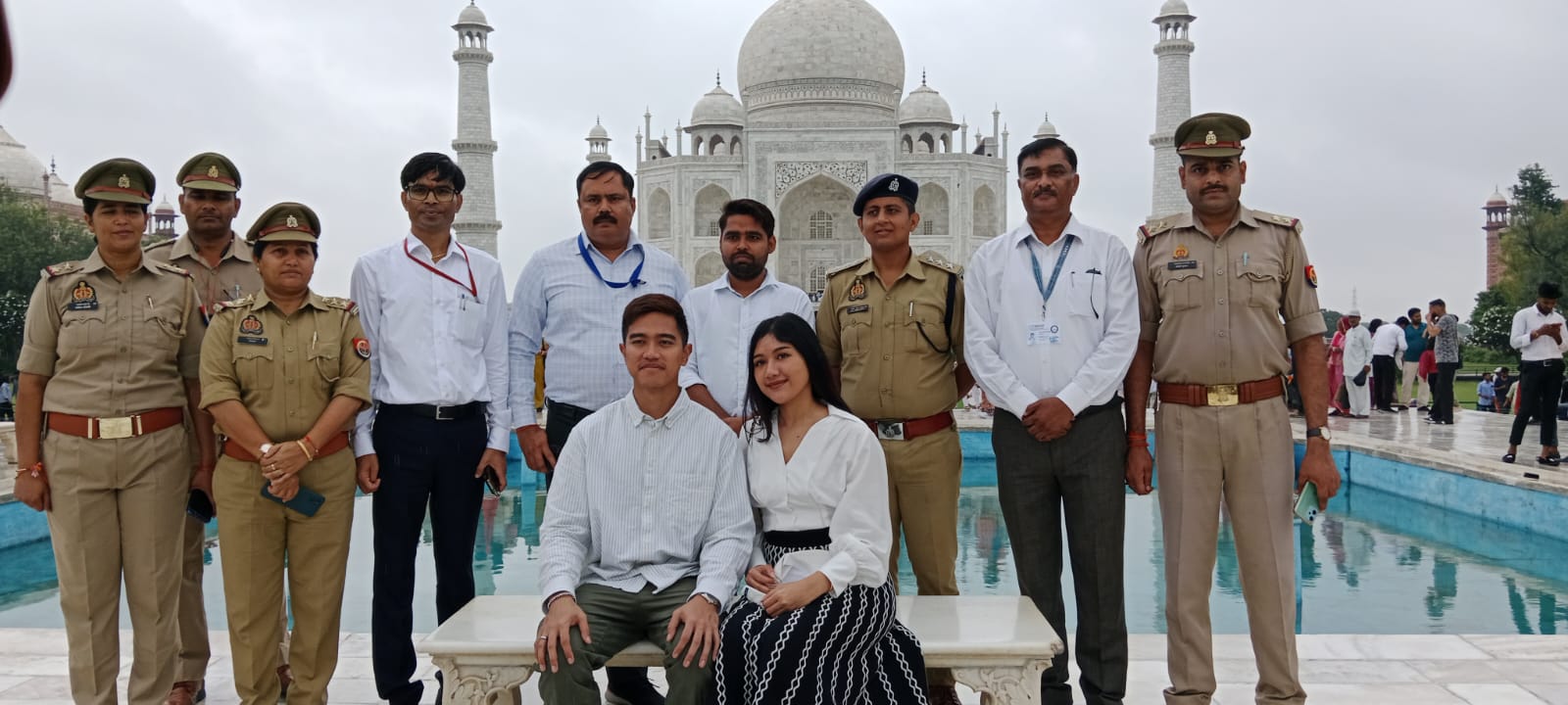 आगरा। जी- 20 सम्मेलन में आए शामिल होने आए इंडोनेशिया गणराज्य के प्रतिनिधिमंडल ने आज ताजमहल का दीदार किया। प्रतिनिधिमंडल में राष्ट्रपति जोको विडोडो के पुत्र केसांग पंगारेप अपनी पत्नी के साथ आए थे।