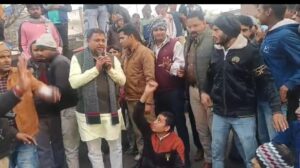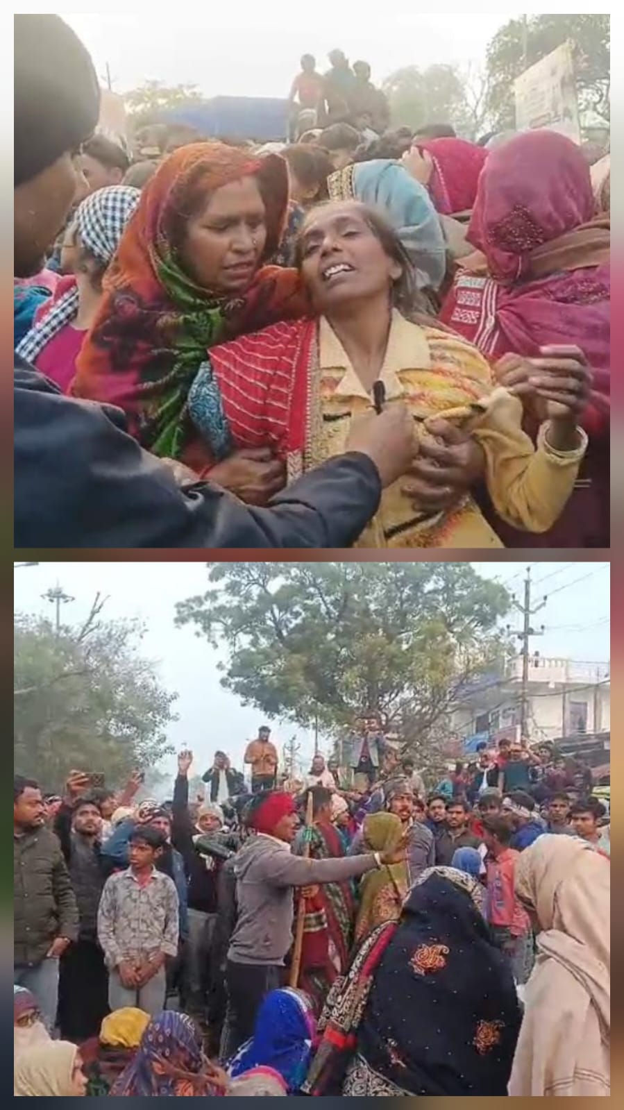 आक्रोशित लोगों के हाथ जोड़कर उन्हें शांत रहने की अपील करते हुए विधायक भगवान सिंह कुशवाहा।