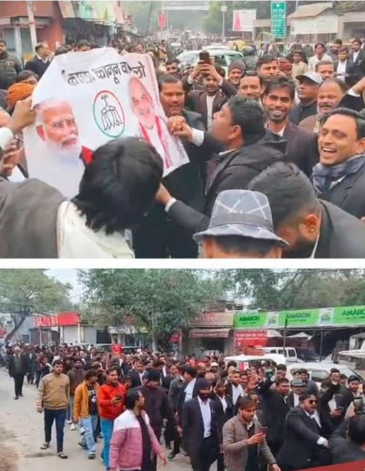 आगरा। यूनिवर्सिटी ग्रांट कमीशन (UGC) के नियमों में किए गए बदलाव को लेकर बुधवार दोपहर दीवानी चौराहे पर अधिवक्ताओं ने प्रदर्शन किया। प्रधानमंत्री व गृह मंत्री के खिलाफ नारेबाजी करते हुए उनका पुतला फूंका। शाम के समय संजय प्लेस स्थित शहीद स्मारक पर कैंडल मार्च भी निकाला गया।