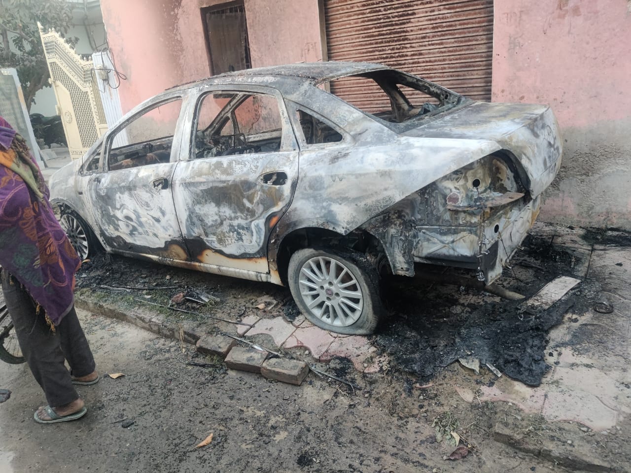घरों के बाहर खड़ी कारों में युवक ने लगाई आग