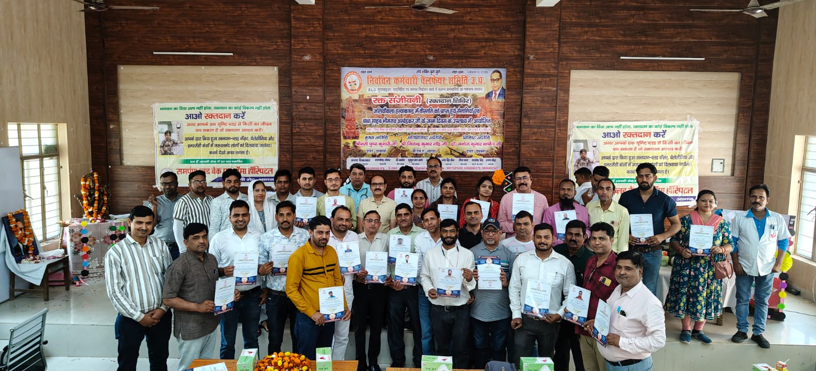 आगरा। निर्वाचन कर्मचारी वेलफेयर समिति के द्वारा जलियावाला बाग हत्याकांड में वीरगति को प्राप्त वीर सेनानियों को श्रद्धांजलि व बाबा अम्बेडकर की जयंती पर जिला शिक्षा एवं प्रशिक्षण संस्थान में रक्त संजीवनी कार्यक्रम आयोजित किया।