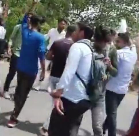 मंगलवार को अछनेरा के सिद्धिविनायक कॉलेज के बाहर छात्रों ने किया हंगामा