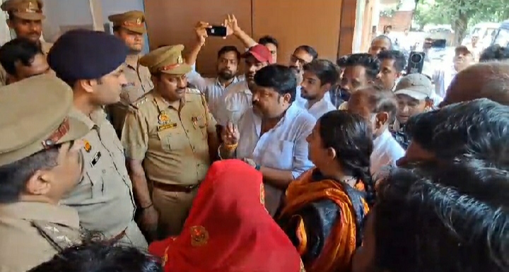 आगरा। लव जिहाद के आरोपियों से हरीपर्वत थाना पुलिस की मिली भगत का आरोप लगाते हुए बजरंग दल ने शनिवार को थाने का घेराव कर हंगामा किया। हनुमान चालीसा का पाठ किया गया। आरोप लगाया गया है कि पुलिस ने मां को बेटी से नहीं मिलने दिया। किशोरी को आरोपित पक्ष ने जैसा पढ़ाया उसने वैसे बयान दे दिए। उन्हीं बयानों को आधार बनाकर पुलिस ने मामले में लीपापोती का प्रयास किया।