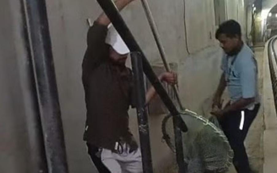 नगर निगम की डॉग रेस्क्यू टीम ने मौके पर पहुंच कर रेस्क्यू ऑपरेशन शुरू किया। दो घंटे की मशक्कत के बाद कुत्ते को सुरक्षित मेट्रो लाइन से बाहर निकाल लिया गया। पशु कल्याण अधिकारी नगर निगम डॉ. अजय कुमार ने बताया कि सुबह 7 बजे रेलवे ट्रैक के बीच कुत्ता फंसा होने की जानकारी मिली थी। वह लाइन के तंग और गहराई वाले हिस्से में फंसा हुआ था, जो मेट्रो ट्रैक के नीचे आता है। उस स्थान पर हाई वोल्टेज करंट चालू था, जिससे रेस्क्यू टीम के लिए भी जान का खतरा बना था। इस पर मेट्रो प्रशासन ने ट्रैक की बिजली आपूर्ति को बंद किया। कुछ देर के लिए रूट की मेट्रो सेवा अस्थाई रूप से रोक दी गई। कुत्ता डरा हुआ था। सावधानी से टीम ने लोहे के ट्रैक और पटरियों के बीच पहुंच कर उसे बाहर निकाला। कुत्ते को एबीसी सेंटर ले जाया गया है।